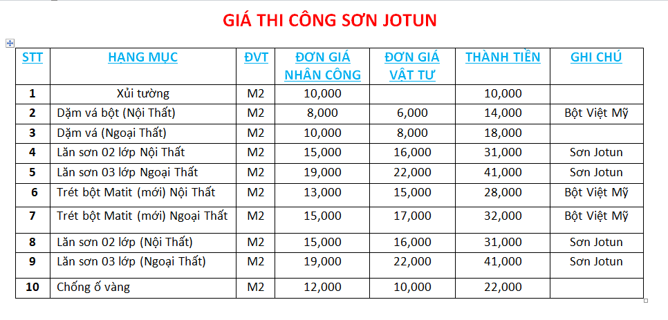 BÁO GIÁ SƠN TƯỜNG NHÀ TRỌN GÓI MỚI NHẤT 2021