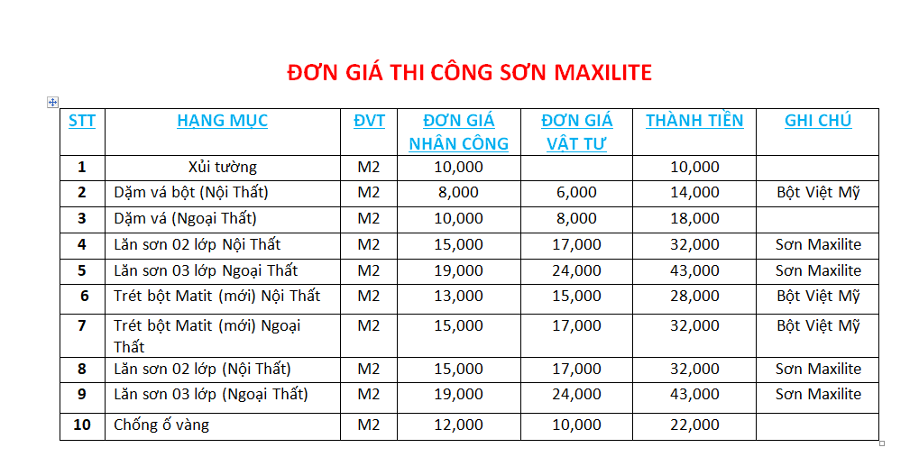 2. Giá Sơn lại nhà bằng sơn Maxilite